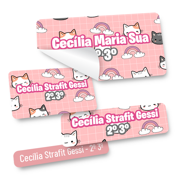 O kit é dividido em 4 tamanhos de etiquetas, permitindo a identificação correta de todos os itens escolares: